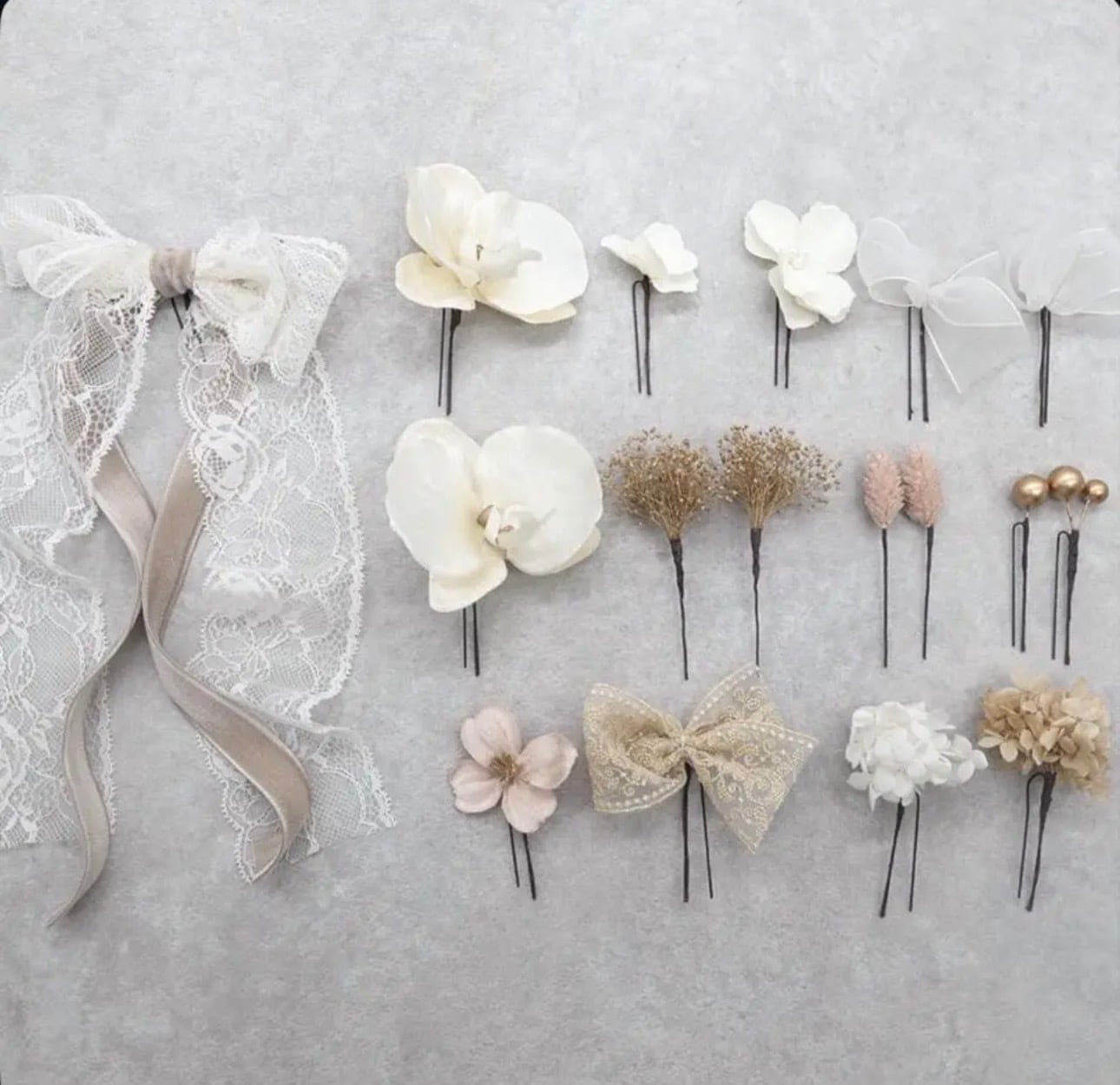hanakanzashi人気パーツの胡蝶蘭レースリボンのアクセサリーセットが登場…♡